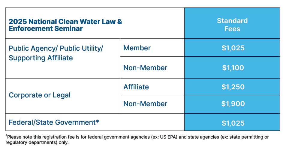 You may register for the 2025 National Clean Water Law & Enforcement Seminar in two easy ways: